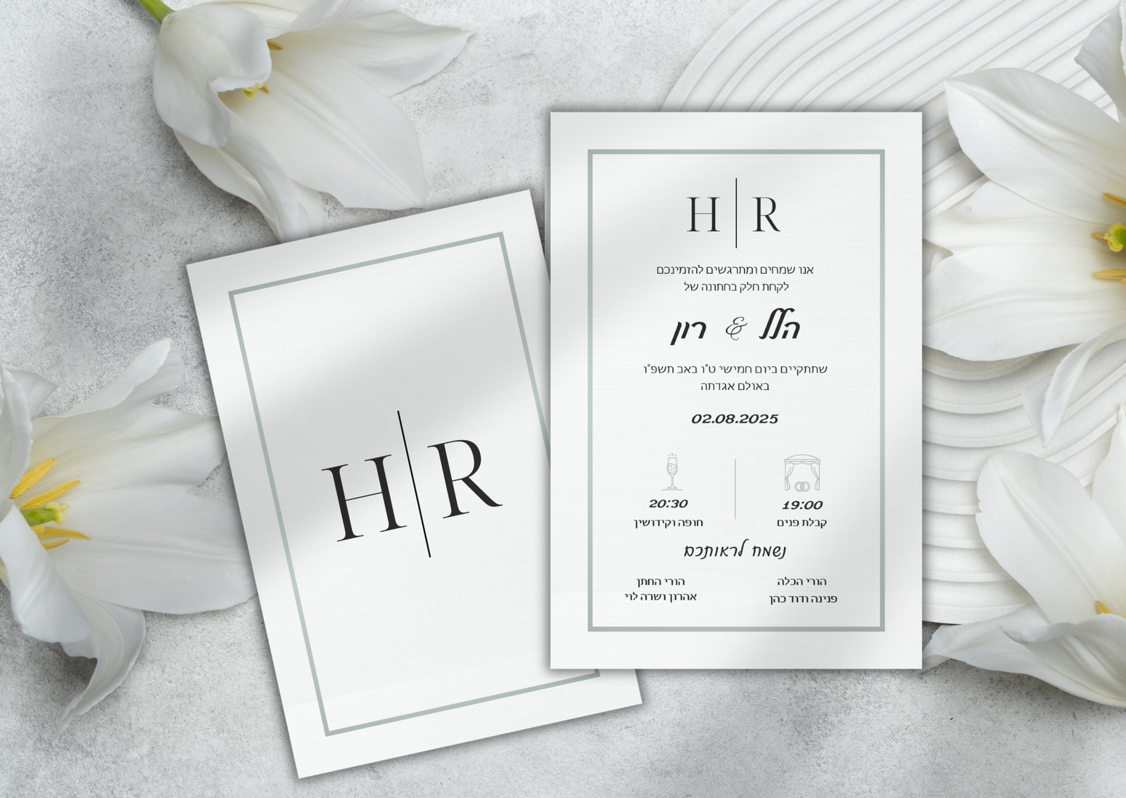 מה כלול: מיתוג דיגיטלי מלא:הזמנהדיגיטלית, סרטון הזמנה , לו"ז לשבת חתן, מדבקת לוגו, פלייסמנט מעוצב ושילוט כניסה.